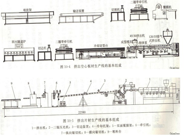 擠出機(jī)的輔助設(shè)備有物料的前處理設(shè)備(如物料輸送與干燥)、耐力板處理設(shè)備(定型、冷卻、牽引、切料或輥卷)和生產(chǎn)條件控制設(shè)備等三大類。